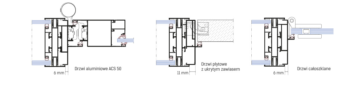 - Maksymalne światło drzwi szklanych – tylko 6 mm w widocznej ościeżnicy