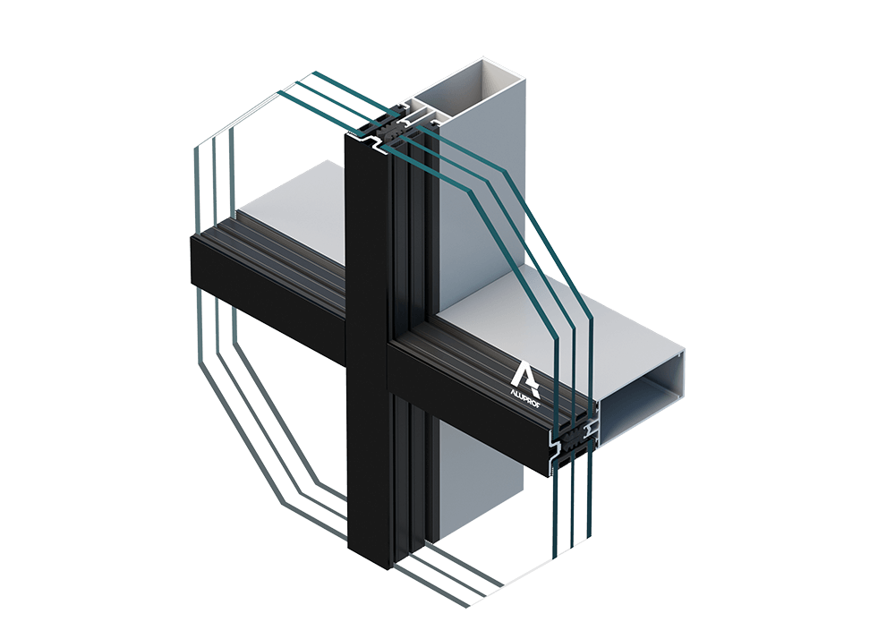 • słupy i rygle o “ostrych” krawędziach pozwalające budować konstrukcje nośne fasad o wyglądzie jednolitej kratownicy